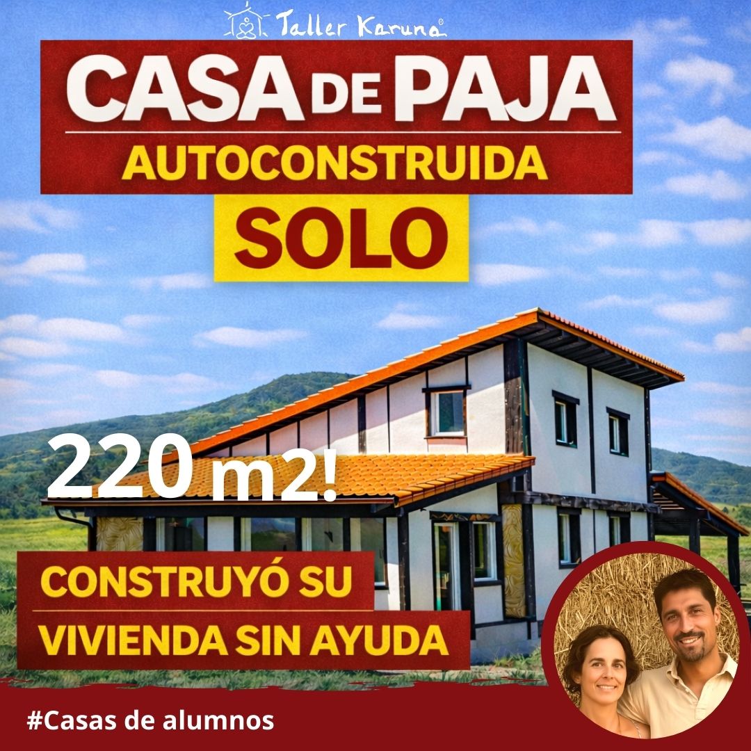 una vivienda de 220 m², construida íntegramente por una sola persona, utilizando balas de paja como sistema constructivo.